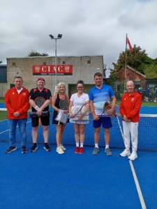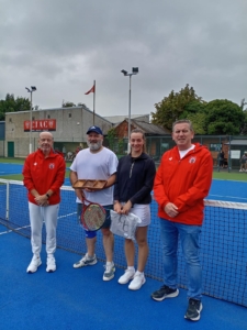A big thank you to Seán MacSweeney who ran the schedule, the tennis committee and our club captain Brendan Maher for all the organising during the week. A special mention to Mark O’Keeffe and Kate McGrath and the social committee for organising all the volunteers for the Pavillion.